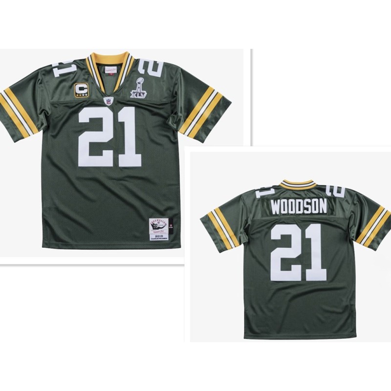 Green Bay Packers #21 Charles Woodson Green With 2-star captains' patch and Super Bowl XLV patch 2010 Throwback Jersey