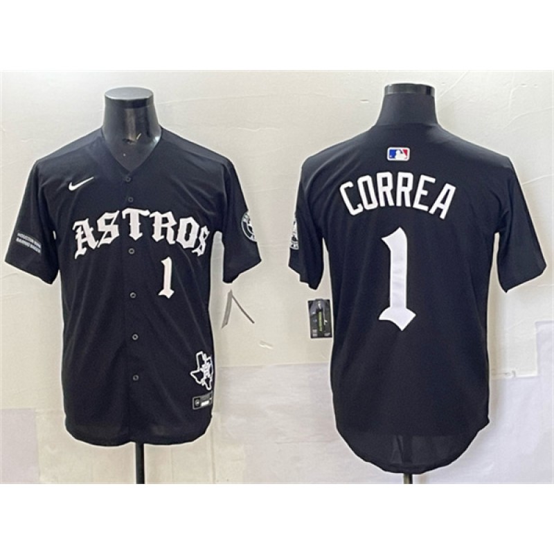 Houston Astros #1 Carlos Correa Black Gothic 'Houston Born Barrio Raised' Limited Stitched Jersey