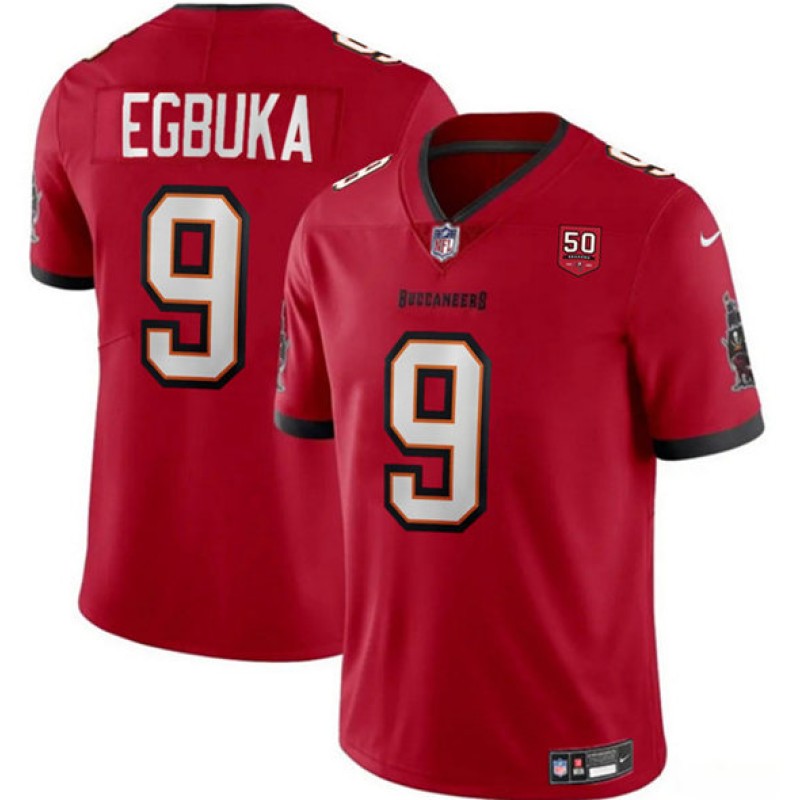 Tampa Bay Buccaneers #9 Emeka Egbuka Red 2025 Draft 50th Anniversary Patch Vapor Untouchable Limited Football Stitched Jersey
