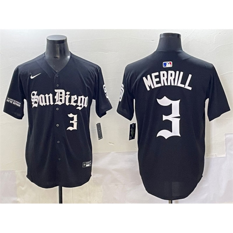 San Diego Padres #3 Jackson Merrill Black Gothic Edition Vapor Limited Stitched Jersey