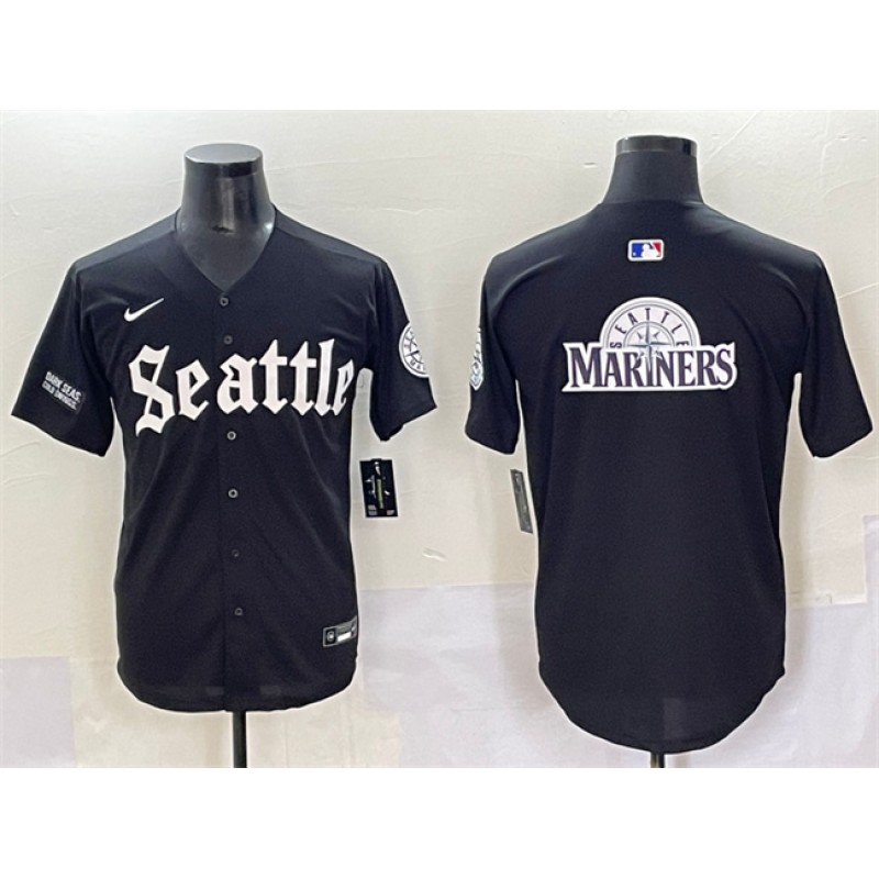 Seattle Mariners Team Big Logo Black 'Deep Sea Gothic Edition' Vapor Premier Limited Stitched Jersey